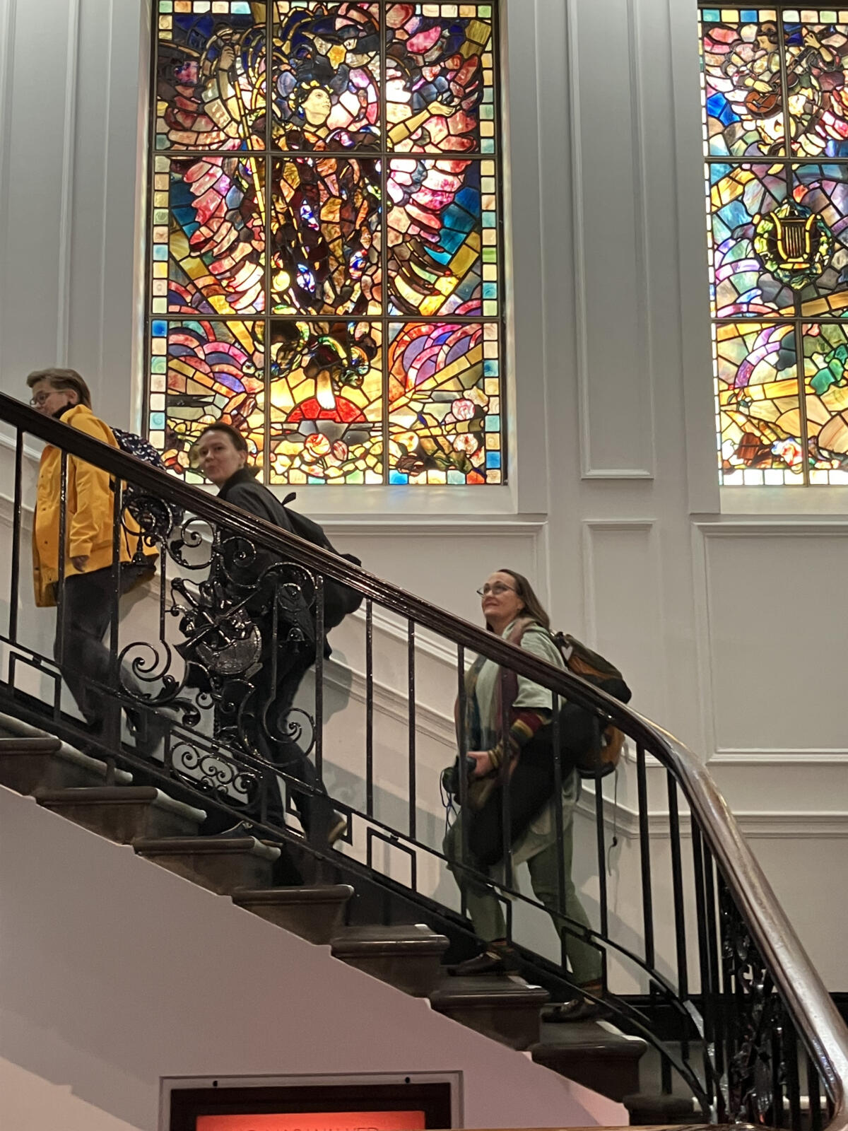 By the way, it doesn’t always rain in London! We had the delightful opportunity to experience a splendid 90-minute lunch break in the heart of the city, which included a lovely walk in a beautifully illuminated garden right behind the Royal Academy of Music.