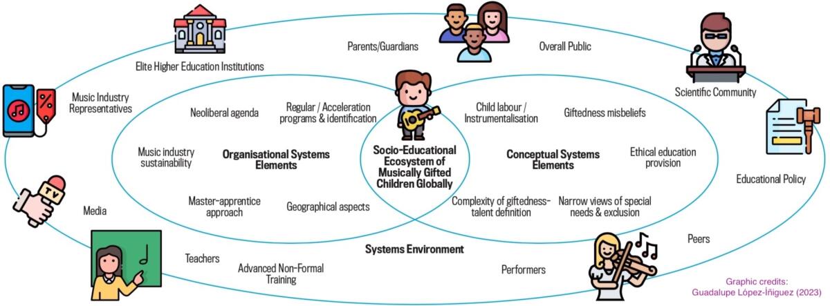 However, we should also develop a broader approach to musically gifted children’s education that “links this knowledge with broader national and international concerns such as human rights, ethics of care, and responsibility and laws that might protect highly gifted youth” (López-Íñiguez & McPherson, 2023, p. 13). For this, we need to undertake multidisciplinary studies to understand the complete ecosystem surrounding children gifted for music at the levels I mentioned above (Bronfenbrenner’s system), combining that knowledge with determining variables such as their motivation, learning mindset, and stage of development.