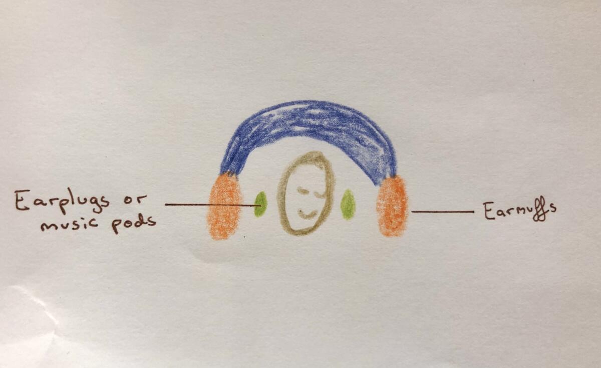 This is a weird tip, but when there is a loud noise, if I make a loud noise in my imagination or sound effects with my voice, it really helps. For example, sometimes as I have walked past loud construction, I made “boom krrrrrrr” sounds in my mind, and it really helps. From yoga, I learned ocean breathing, or ujjayi breathing. This allows me to make a gentle sound that only I can hear. By making my own sounds, physical or imaginary, I can create cover from an external not-so-nice soundscape.