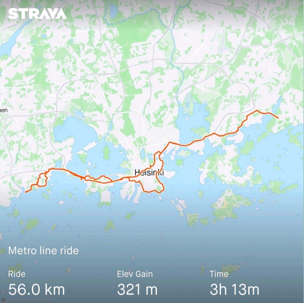 Rastila – Matinkylä (old metro line ride) around 25 km