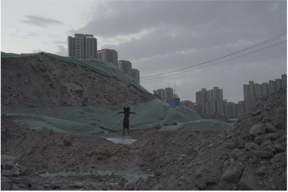 In the performance “Bend the Earth” (Lanzhou, 2020), I put a discarded mattress in the bottom of a sandpit at a construction site in Lanzhou and jumped on it continuously. In contrast to the aforementioned abandoned pits far from residential areas, the sandpit was just around the corner from where I lived at the time, and I walked through it every day for lunch. I noticed that the residents of the neighbourhood seemed unconcerned by the sandpit. They seemed to imagine themselves living in a clean, modern high-rise, pretending that the pit in front of them didn’t exist.In the work I kept jumping as high as I could, trying to get my body out of the sandpit. The repetitive movement of my body jumping and dropping was stopped by a sudden sandstorm. After a while, I did it again, and another sandstorm came and stopped me again. Re-watching this performance, I realized that it was more like me drilling into the bottom of the sandpit than jumping at the sky. Or rather, they were two sides of a same movement.