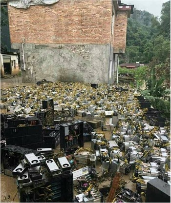 Although electricity is cheap during the rainy season, bitcoin mines located in the deep forests of Sichuan were often hit by sudden downpours and flooding. Once that happens, the machines become a pile of trash. Mining machine manufacturers, collect such discarded machines for less than €1 each to reassemble new miners.