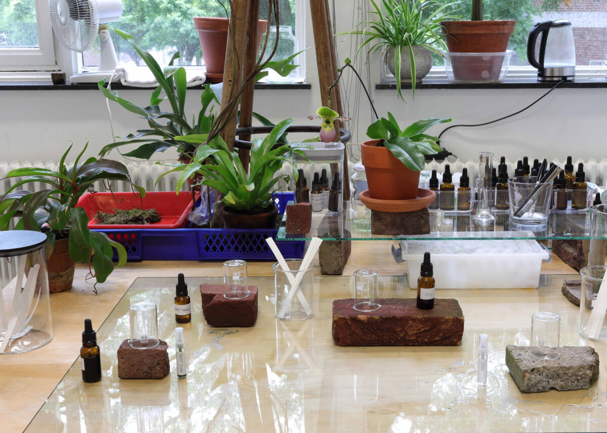 At the start of my residency, I began working with a material that was completely new to me. Within just a few days, I was able to connect with experts in the field, which was fortunate, as this kind of guidance wouldn’t have been easily available back in Finland. Since Jan Van Eyck didn’t have specialized knowledge in the expertise area of scents, I attended courses outside the academy and met a perfumer who helped me work with chemicals and establish best practices. This intense learning experience quickly became the focal point of my time at the residency.