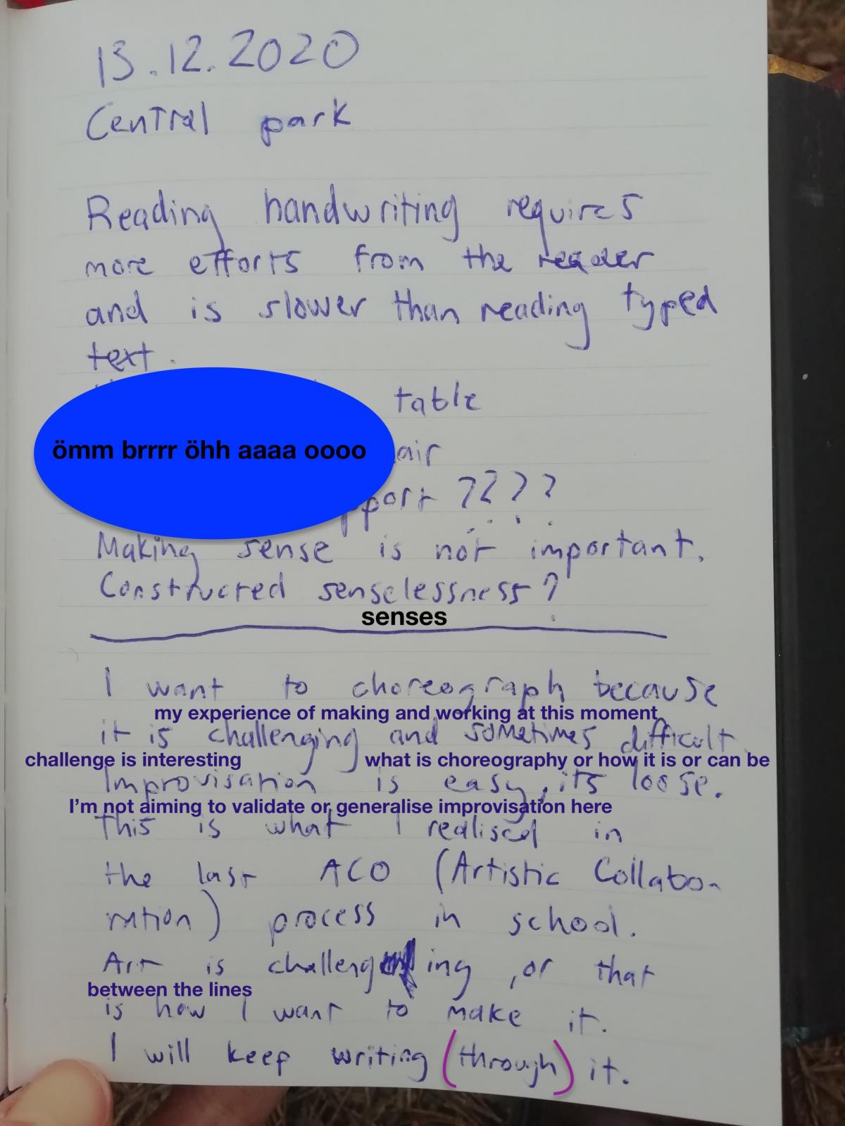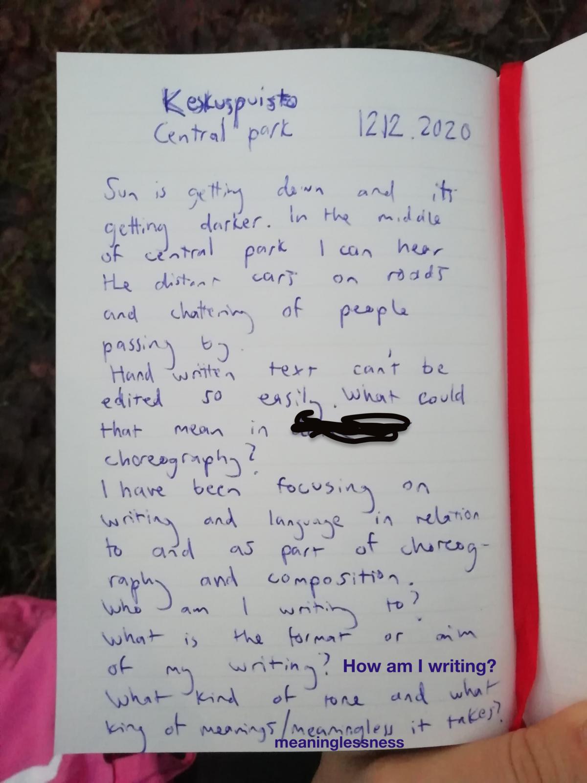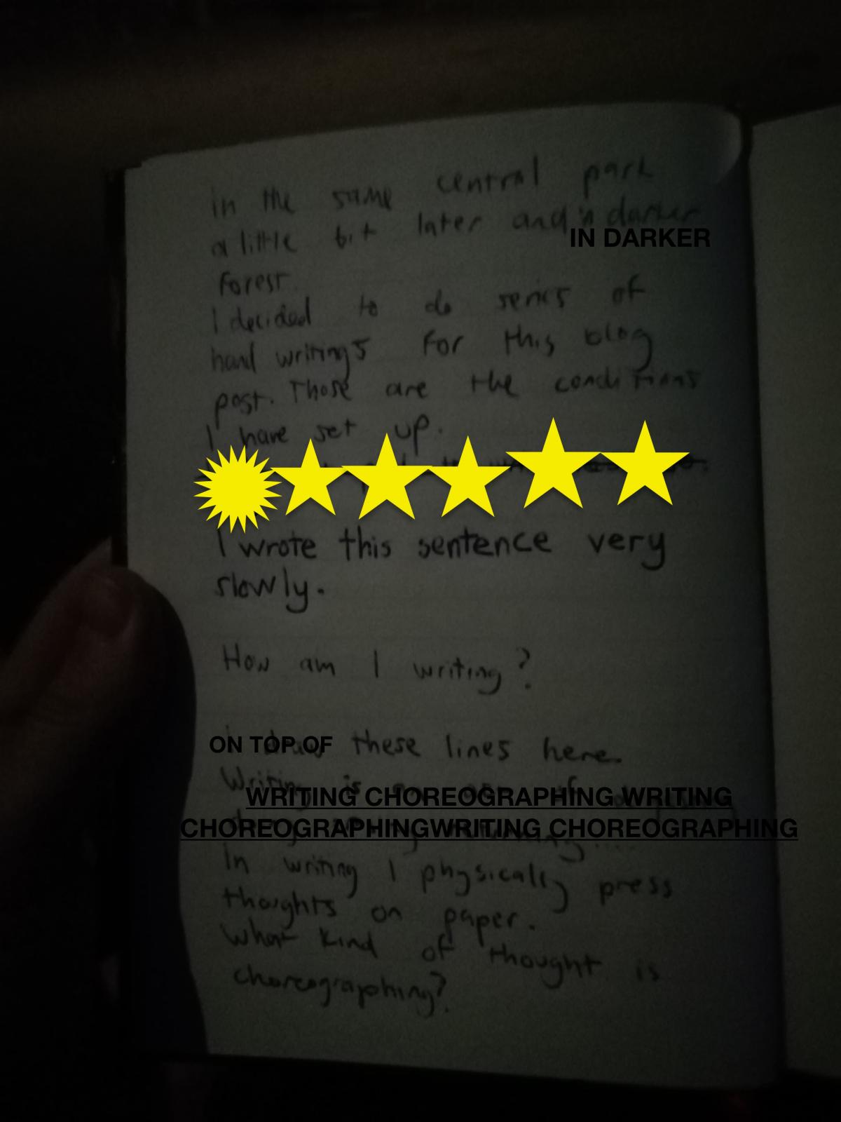 Series of handwritings reflecting on choreographing and writing parallel, affecting each other. How can writing be or become choreography?