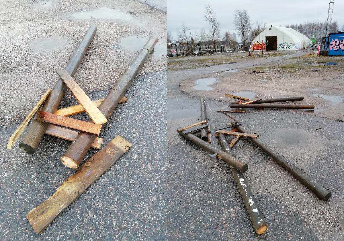 Hommasin hiljattain itselleni työhuoneen. Se on laatuaan ensimmäinen, josta oikeasti maksan vuokraa. Ennen tätä hyörin mahdollisimman pitkään taidekoulujen nurkissa projekteineni, käyttäen hyväkseni ilmaisia neliöitä. Onkin ironista, että juuri nyt kun olen siirtynyt maksulliseen aikaan työskentelytilojen suhteen, käsillä on ensi kertaa sellaisen kokoluokan projekti, ettei sitä voi kuvitella sullovansa sisätiloihin. Kyseessä on maisterinäyttelytoverini Jussi Nykäsen kanssa yhteistyössä toteutettava ympäristötaideteos, Hiien hirvi, jolla osallistumme hiljattain uudelleen avatun Retretin kalevalaiseen ympäristötaidepolkuun Punkaharjulla. Teos on karikatyyrimainen puinen rakennelma, ikäänkuin hirven luuranko tai rautalankamalli – hirvi riisuttuna yksinkertaisimmilleen. Sen harjakorkeus noussee kahteen ja puoleen metriin. Tämä on toistaiseksi isointa mitä kumpikaan meistä on rakentanut. Teoksen vuoksi on siis astuttava raittiiseen ulkoilmaan ja etsiydyttävä toisenlaisille työmaille. Ratkaistava jälleen eräs logistinen ongelma ja käytettävä ovelasti hyväkseen vielä rakentumatonta kaupunkia, hukkatilaa sen laitamille. Suuntaamme siis entuudestaan tutuille jättömaille tätä rakennusprojektia varten, salaiseen lokaatioon. Näiden rytöläjien, verkkoaitojen ja alituisesti muuttavien epätilojen katveesta olemme aiemminkin haalineet aarteita – romumateriaalia teoksiin.