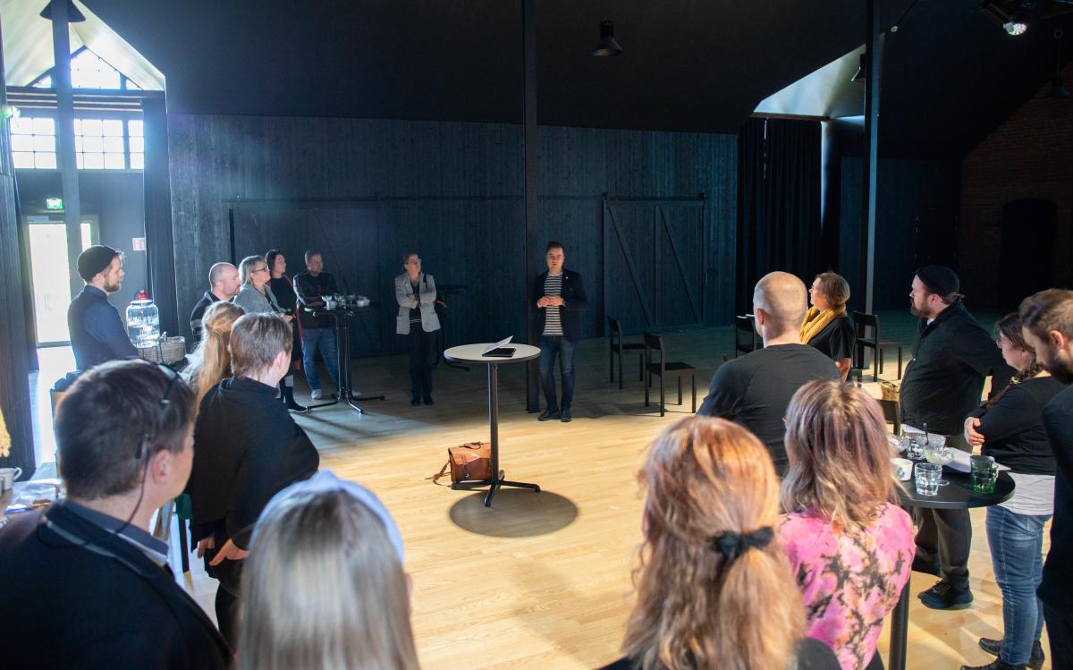 Syyskuun lopussa, kun taiteilijat olivat työskennelleet yritysten haasteiden parissa nelisen kuukautta, pidettiin tilaisuus, jossa sekä yritykset että taiteilijat kohtasivat uudelleen. Iltapäivän aikana kukin taiteilija sai esitellä oman ratkaisukonseptinsa, joiden pohjalta keskusteltiin. Yritysten haasteista voit lukea lisää aikaisemmasta blogipostauksesta.